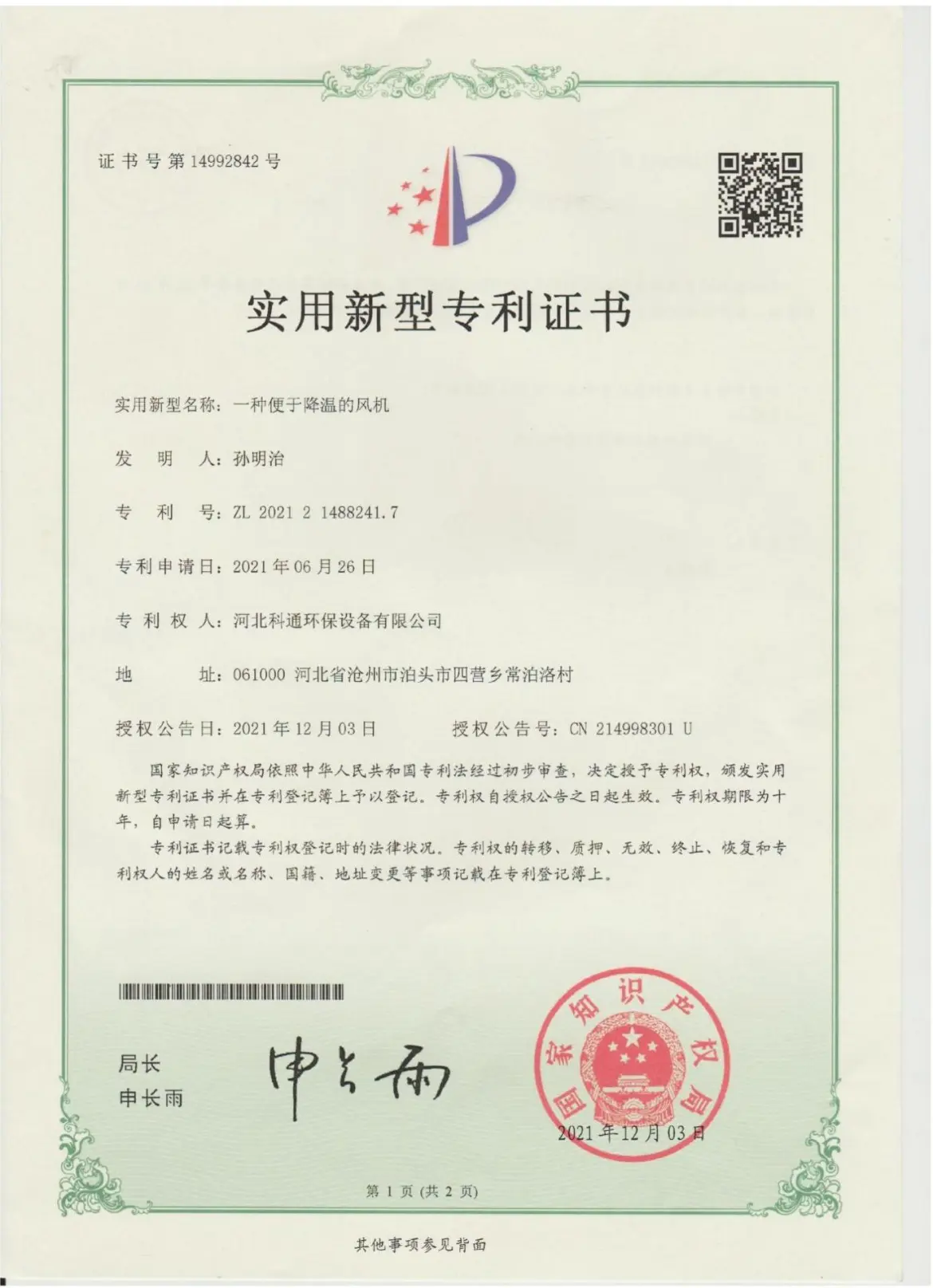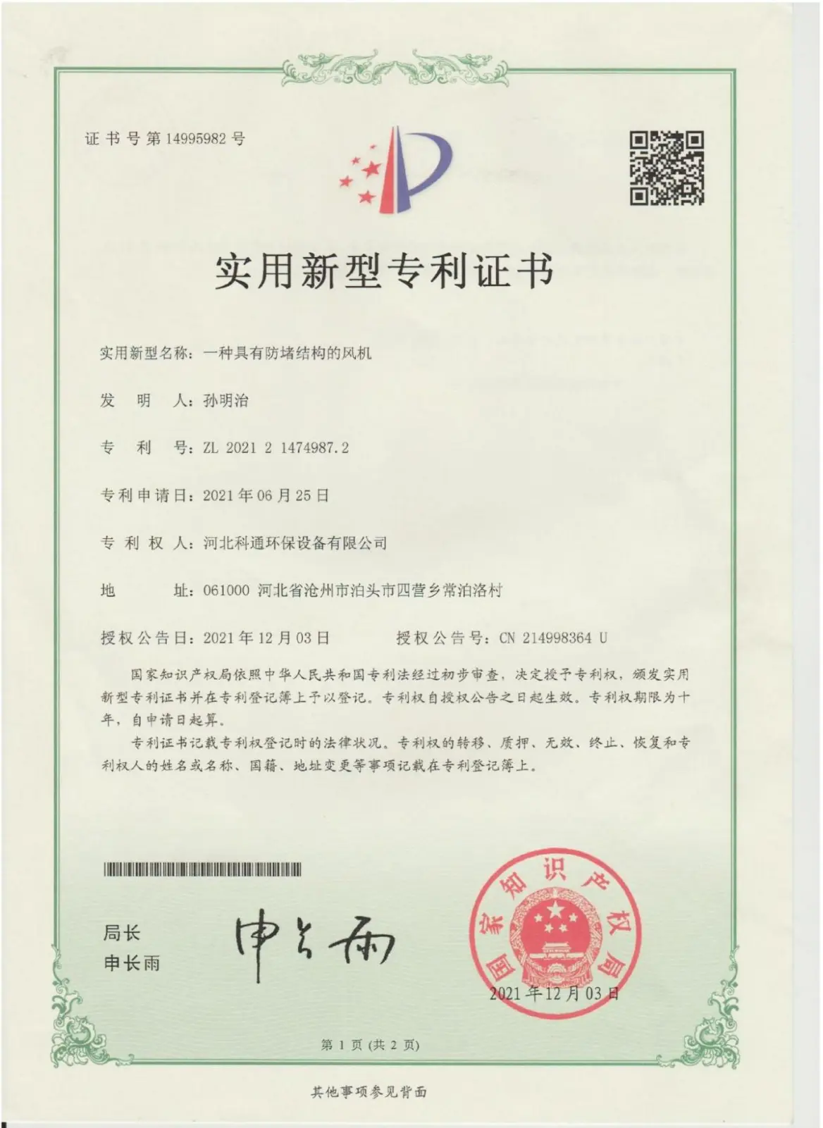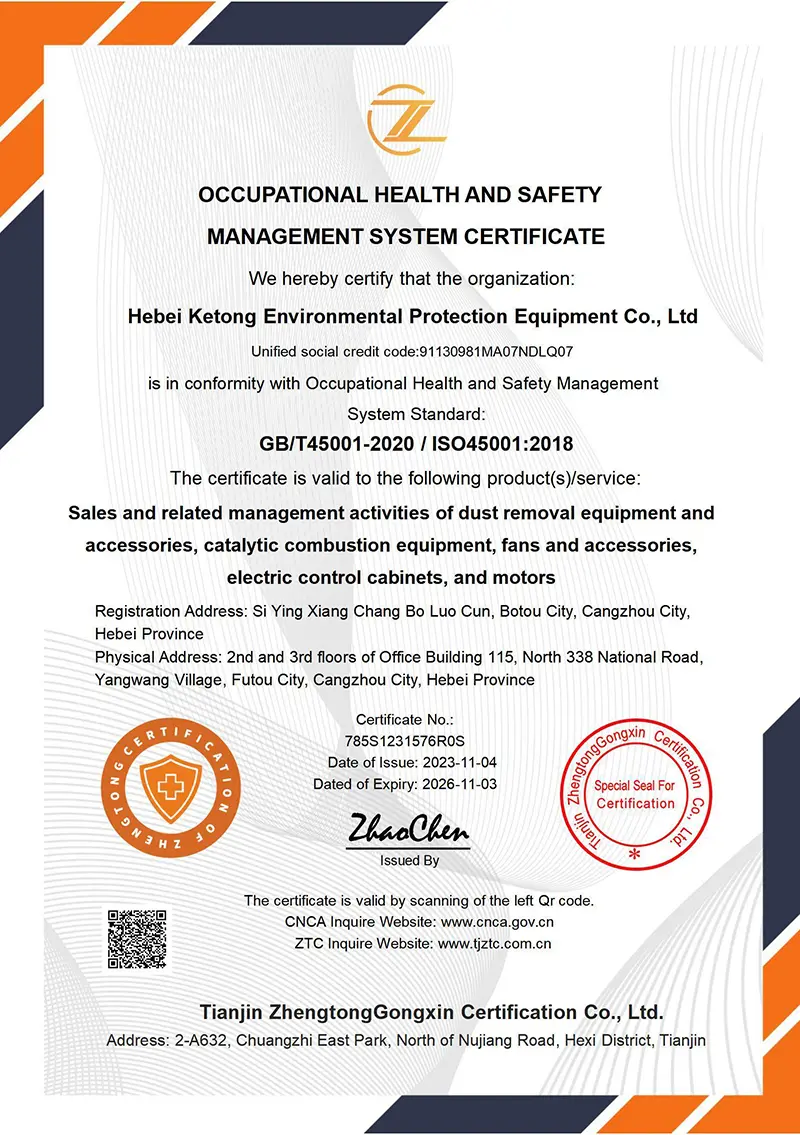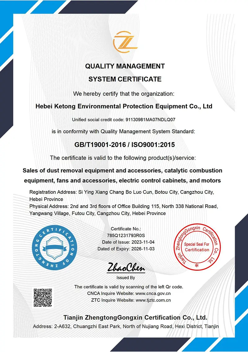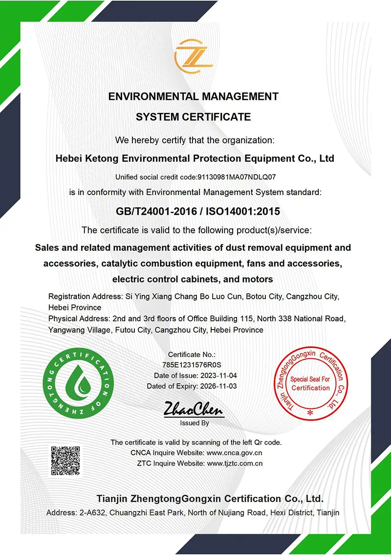 Hebei Ketong ফ্যান নির্ভরযোগ্য গুণমান এবং নিরাপদ কর্মক্ষমতা সহ সিই সার্টিফিকেশন এবং জাতীয় শিল্প বায়ুচলাচল সরঞ্জাম গুণমান পরিদর্শন শংসাপত্র পেয়েছে। অনেক বছরের অপারেশন সহ একটি সরাসরি বিক্রয় কারখানা হিসাবে, আমাদের নিজস্ব প্রমিত উত্পাদন বেস এবং সম্পূর্ণ রপ্তানি যোগ্যতা রয়েছে এবং পণ্য পরামিতি কাস্টমাইজেশন, বিক্রয়োত্তর রক্ষণাবেক্ষণের কর্মক্ষমতা পরীক্ষা থেকে শুরু করে ওয়ান-স্টপ পরিষেবা সরবরাহ করতে পারি। ব্যবহারের সময়, প্ররোচিত ড্রাফ্ট ফ্যানের সহজ রক্ষণাবেক্ষণ এবং দীর্ঘ পরিষেবা জীবনের সুবিধা রয়েছে: দৈনিক রক্ষণাবেক্ষণের জন্য শুধুমাত্র ফ্যানের সিলিং কার্যকারিতা এবং ধুলো বিভাজন ডিভাইস পরিষ্কারের নিয়মিত পরিদর্শন প্রয়োজন, এবং পরিধান-প্রতিরোধী ইম্পেলারটি স্বাধীনভাবে প্রতিস্থাপন করা যেতে পারে, যা সরঞ্জামের সামগ্রিক প্রতিস্থাপন খরচ কমিয়ে দেয়।